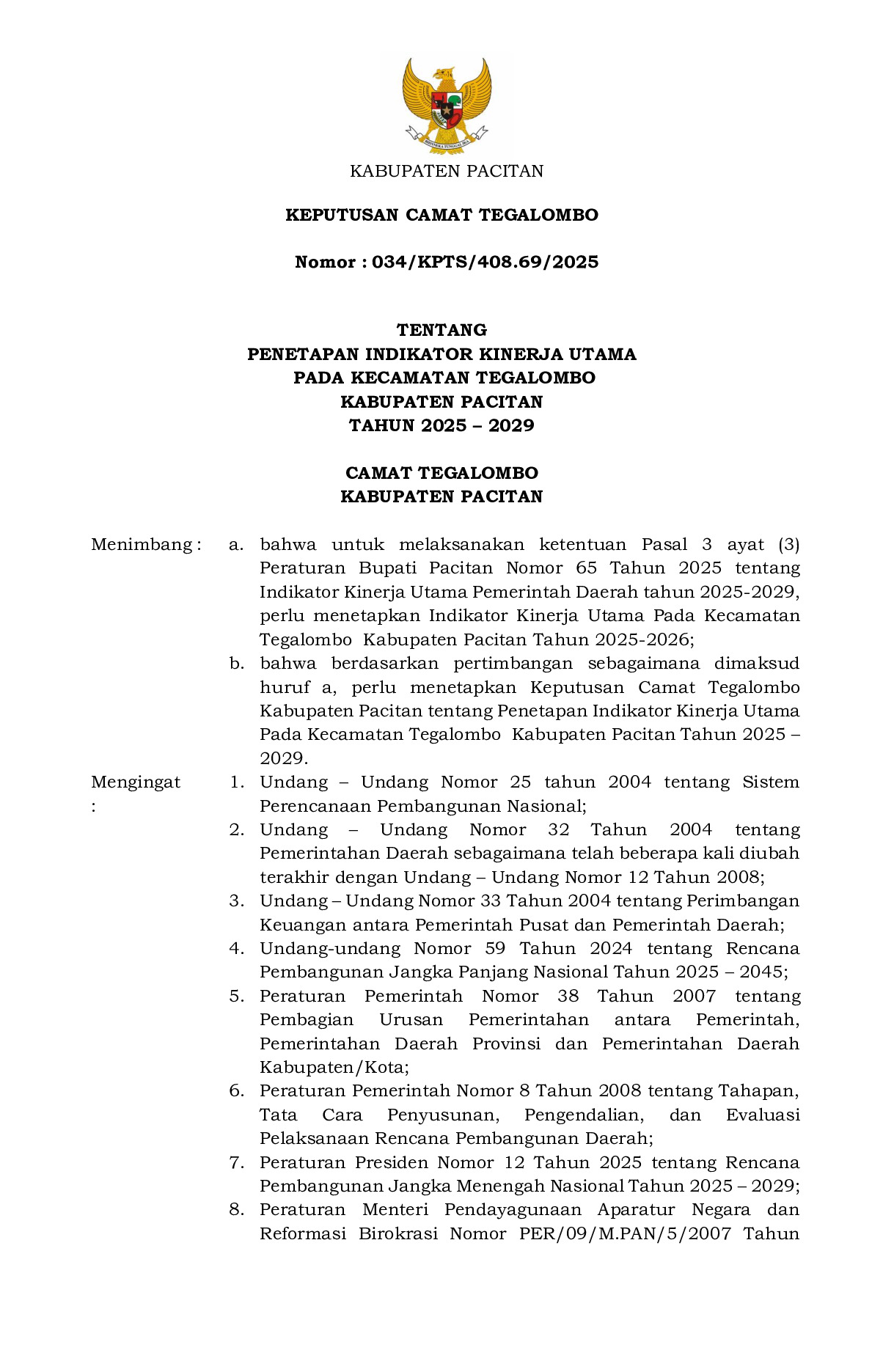 Kecamatan Tegalombo merupakan salah satu wilayah administratif di Kabupaten Pacitan yang dikenal dengan karakter masyarakatnya yang gotong royong, ramah, dan menjunjung tinggi nilai-nilai kearifan lokal.